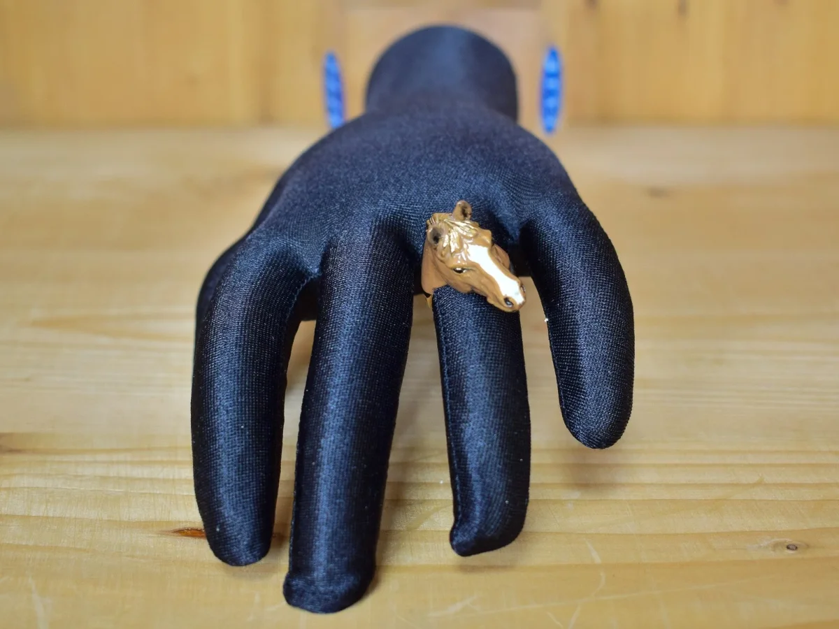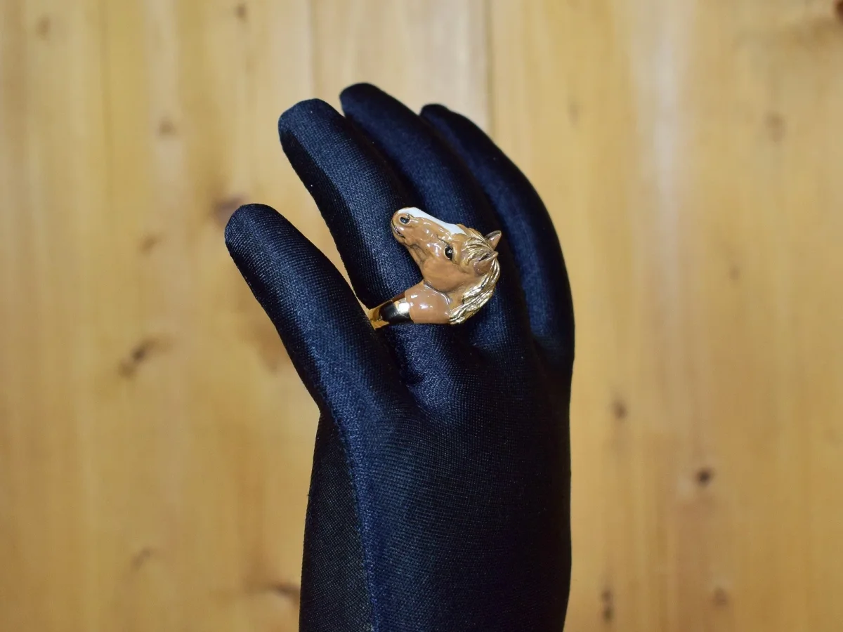 Anello artigianale Bronzo Testa di cavallo dipinta a mano