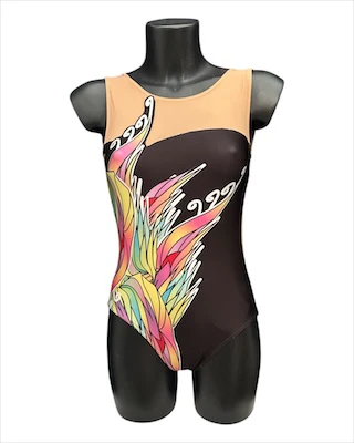 Un capo artigianale Made in Italy, realizzato a mano con tessuti tecnici elasticizzati, ideali per garantire la massima libertร di movimento durante la ginnastica artistica e ritmica. L’ampia fantasia โaliโ colora su fondo nero dona leggerezza e dinamicitร , creando un effetto scenico unico che cattura l’attenzione. Guida alle Taglie