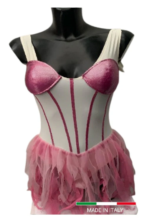 Le frange, realizzate con materiali leggeri e trasparenti, aggiungono movimento e dinamismo, rendendo il body ideale per performance sceniche o serate speciali.