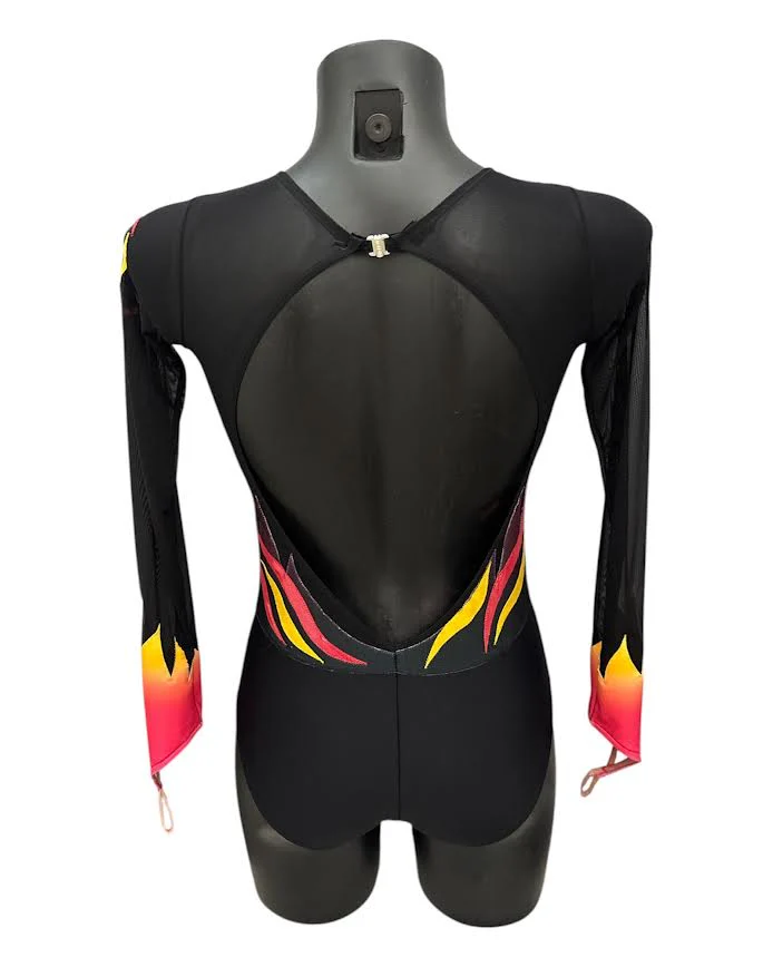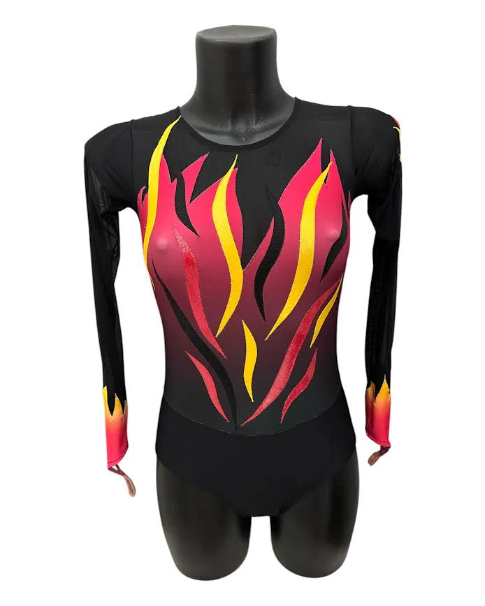 La grafica dinamica, con fondo nude e inserti “a raggi” in blu, nero e lime, è valorizzata da strass applicati a mano che catturano la luce sul palcoscenico. Presenta maniche lunghe, perfette per mantenere le braccia calde, allungarne la linea e dare eleganza formale . Il taglio con spalline ampie, scollo ergonomico e cuciture rinforzate […]