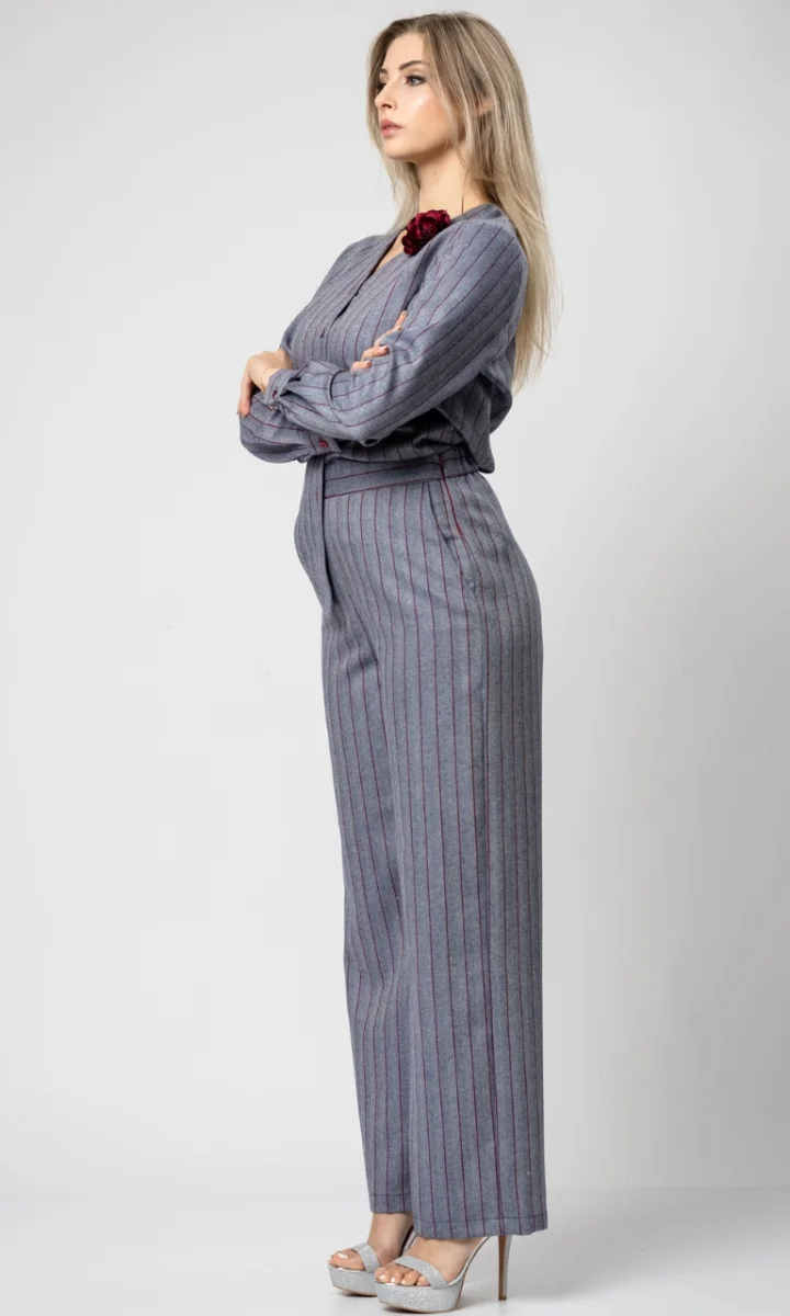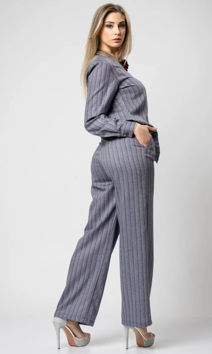 Completo camicia e pantalone donna elegante in lana a righe