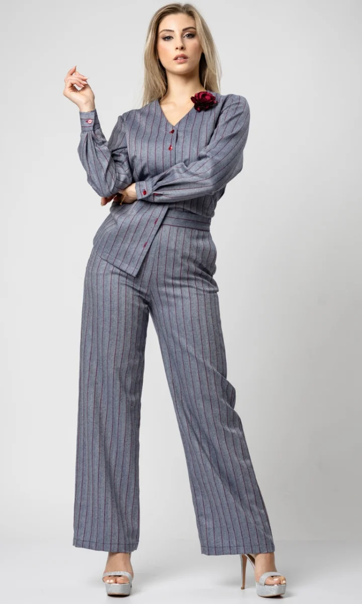 Camicia e pantalone sartoriale donna elegante in lana a righe