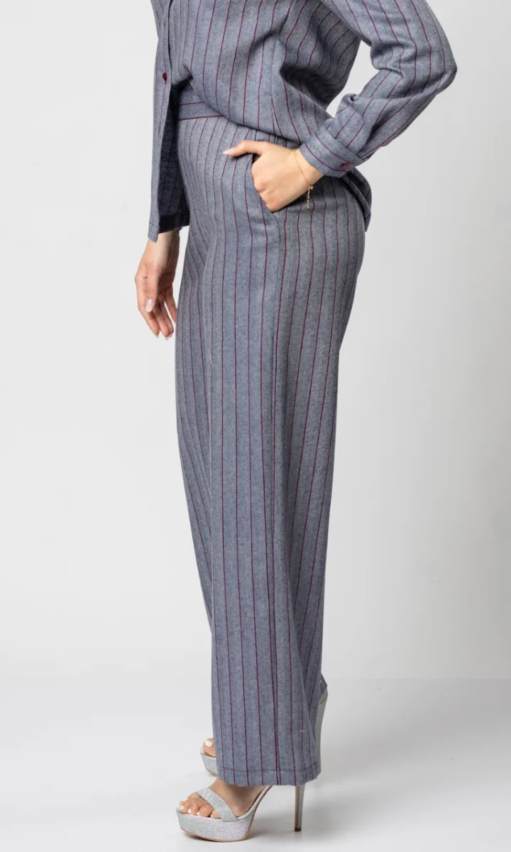 Camicia e pantalone donna a righe invernali: Materiali e qualitร sartoriale