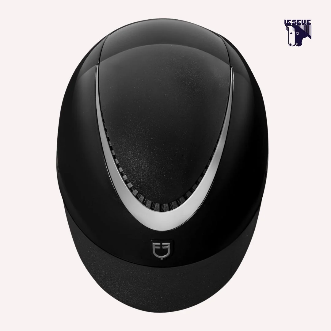 Casco equitazione Equestro Cap leggero e resistente Esterno lucido Frame silver Ventilazione garantita dalle prese d’aria frontali Interno staccabile e lavabile Visiera standard Regolazione della taglia con rotella posteriore Cinturino in ecopelle anallergico e antibatterico