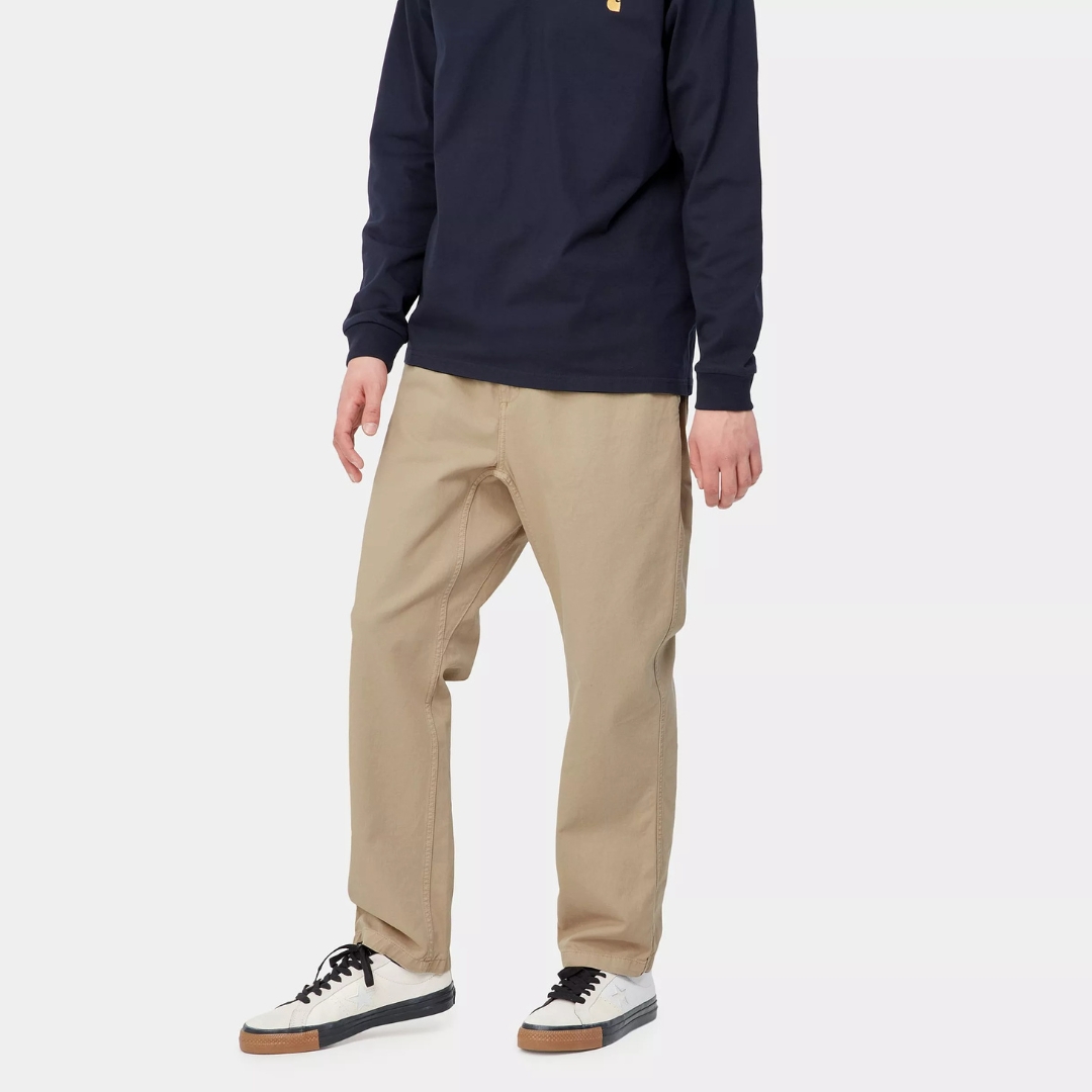 Le tasche porta-attrezzi aggiungono un tocco funzionale, mentre l’impuntura a travetta nei punti di maggiore usura assicura durabilitร . La patta con zip e l’etichetta quadrata completano il design, mantenendo lo stile iconico di Carhartt WIP.