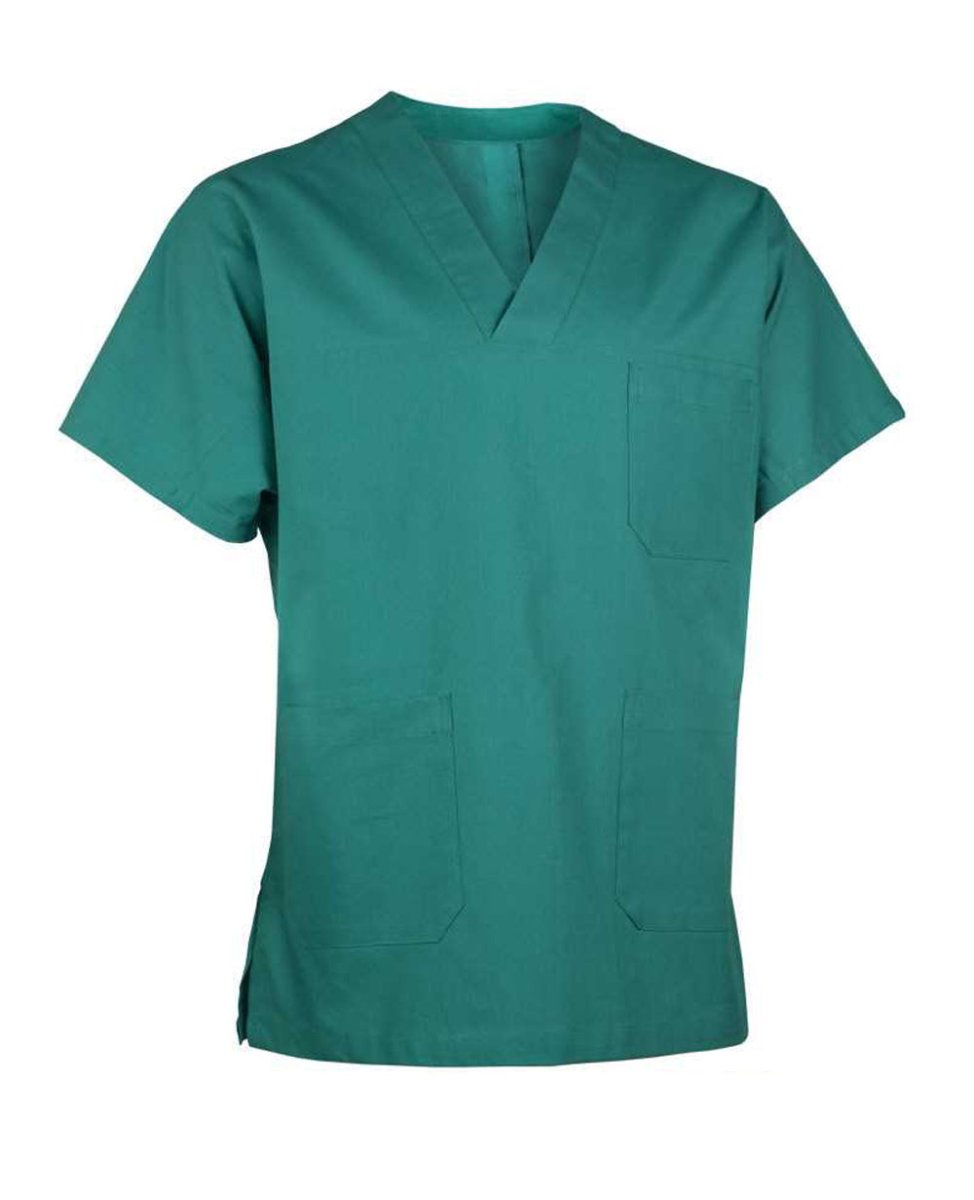 Casacca ospedaliera in cotone con taschino nella parte superiore, due tasche a toppa nella parte inferiore, scollo a โVโ con incrocio e spacchetti laterali. NORMATIVE: Dpi 1ยฐcategoria