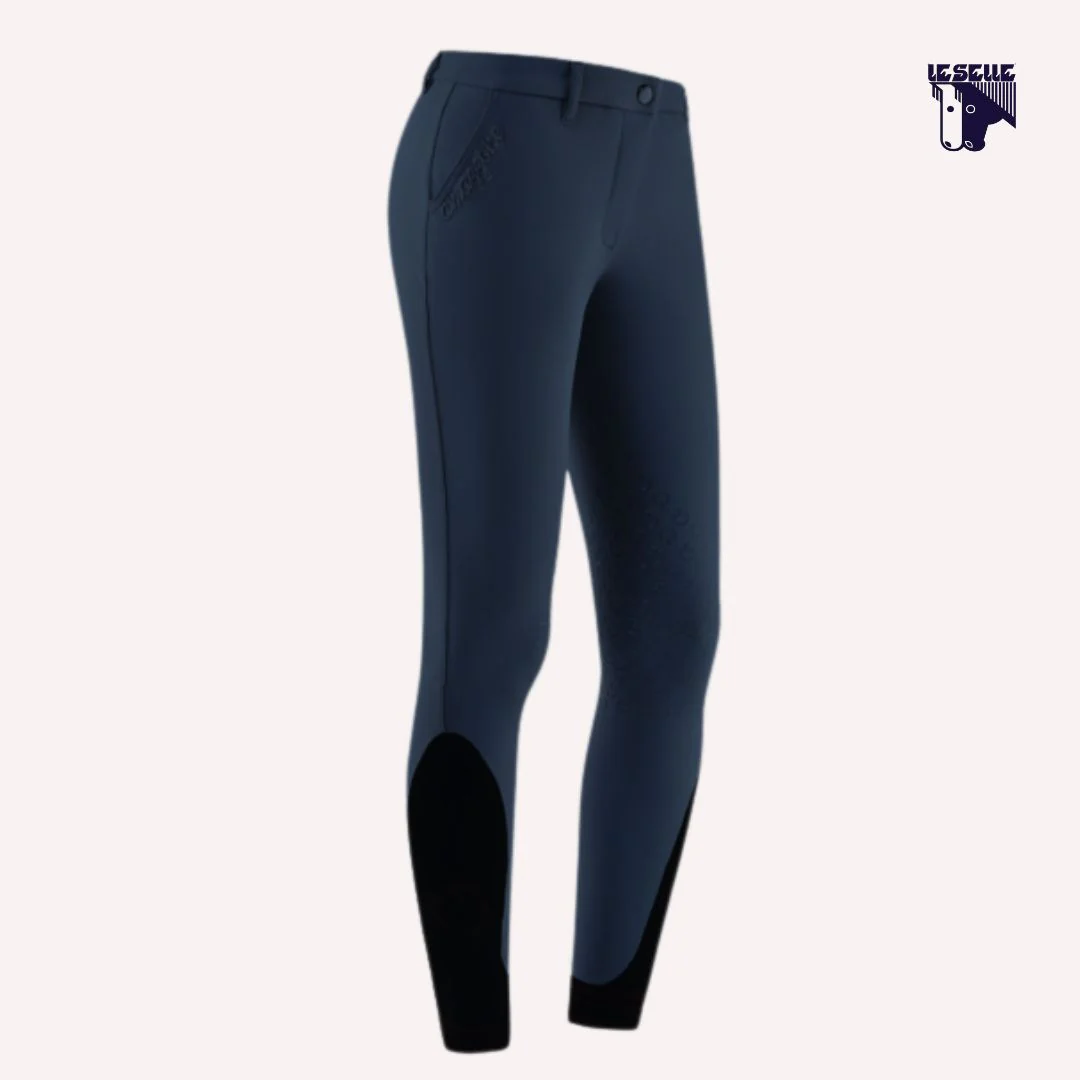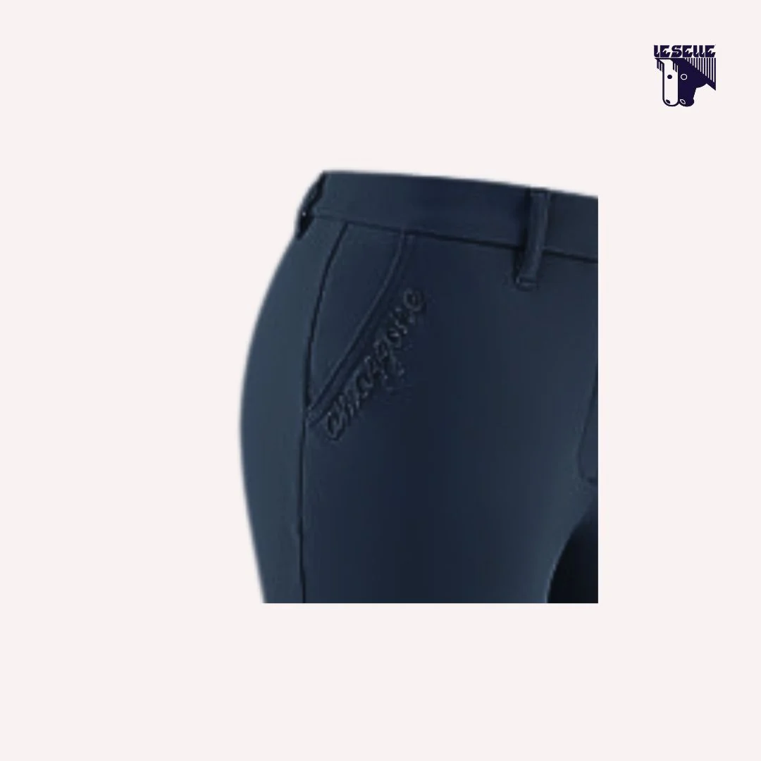 Pantaloni equitazione Cavalleria Toscana Tessuto tecnico elasticizzato Traspirante, antibatterico, anti UV Grip al ginocchio Vita media con un bottone Due tasche diagonali anteriori Ricamo “amazzone” sulla tasca destra