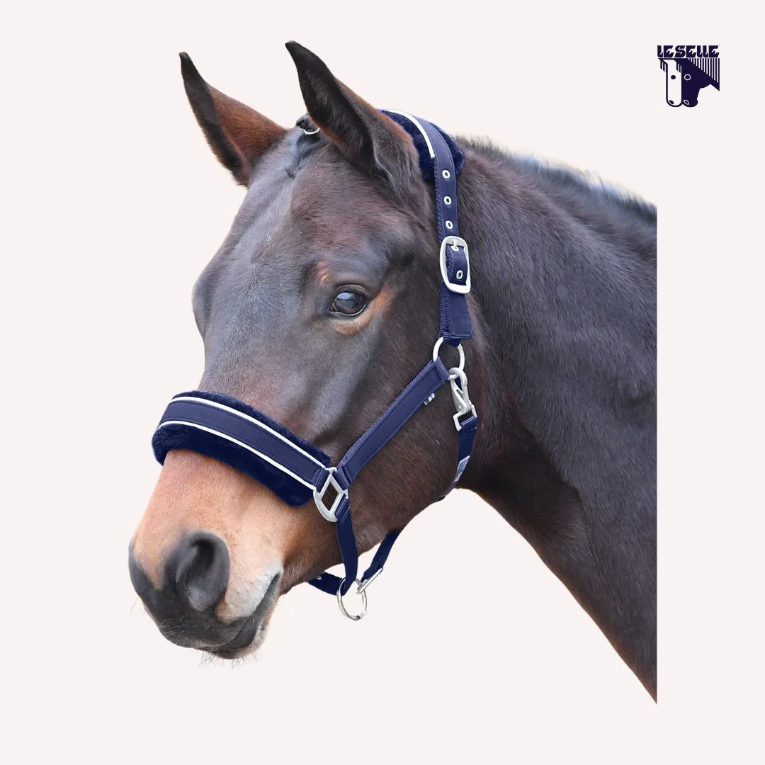 Cavezza Busse Nylon robusto Imbottitura in eco pelliccia nera Piping argentato su capezzina e sovraccapo Fibbie argento satinato