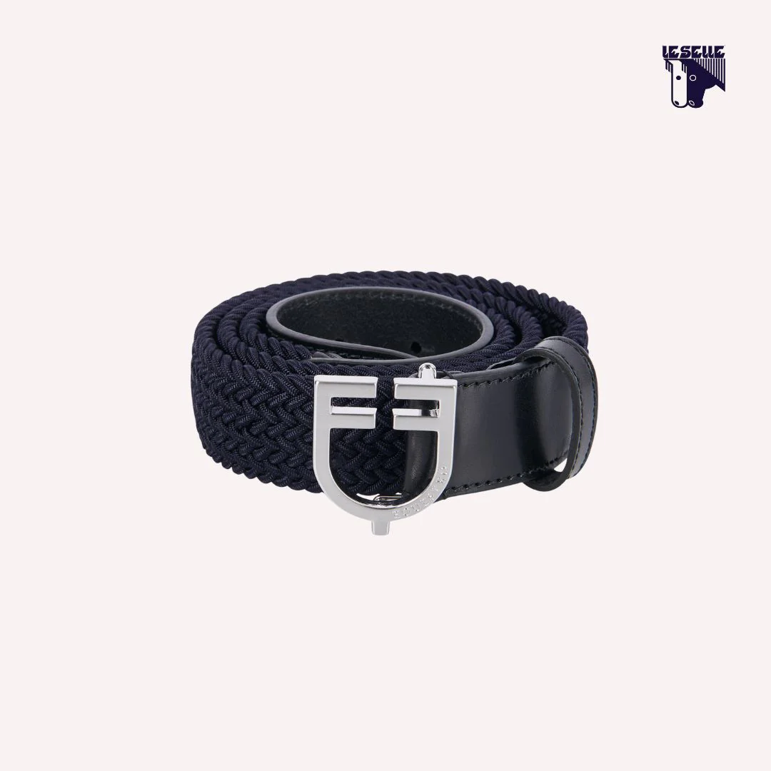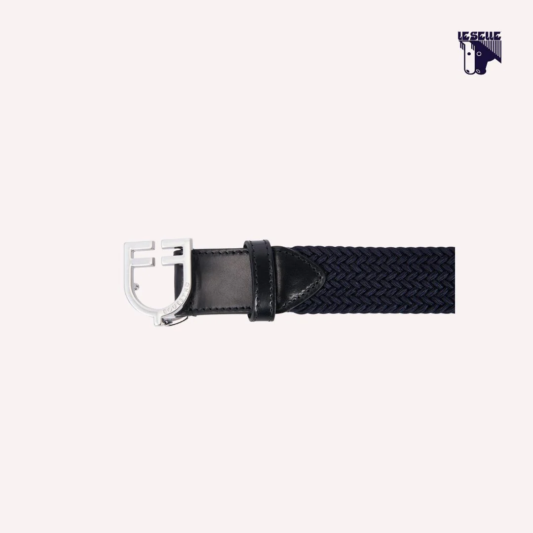 Cintura Equestro Unisex Tessuto elasticizzato intrecciato Finiture in morbido cuoio Fibbia a logo in acciaio inox