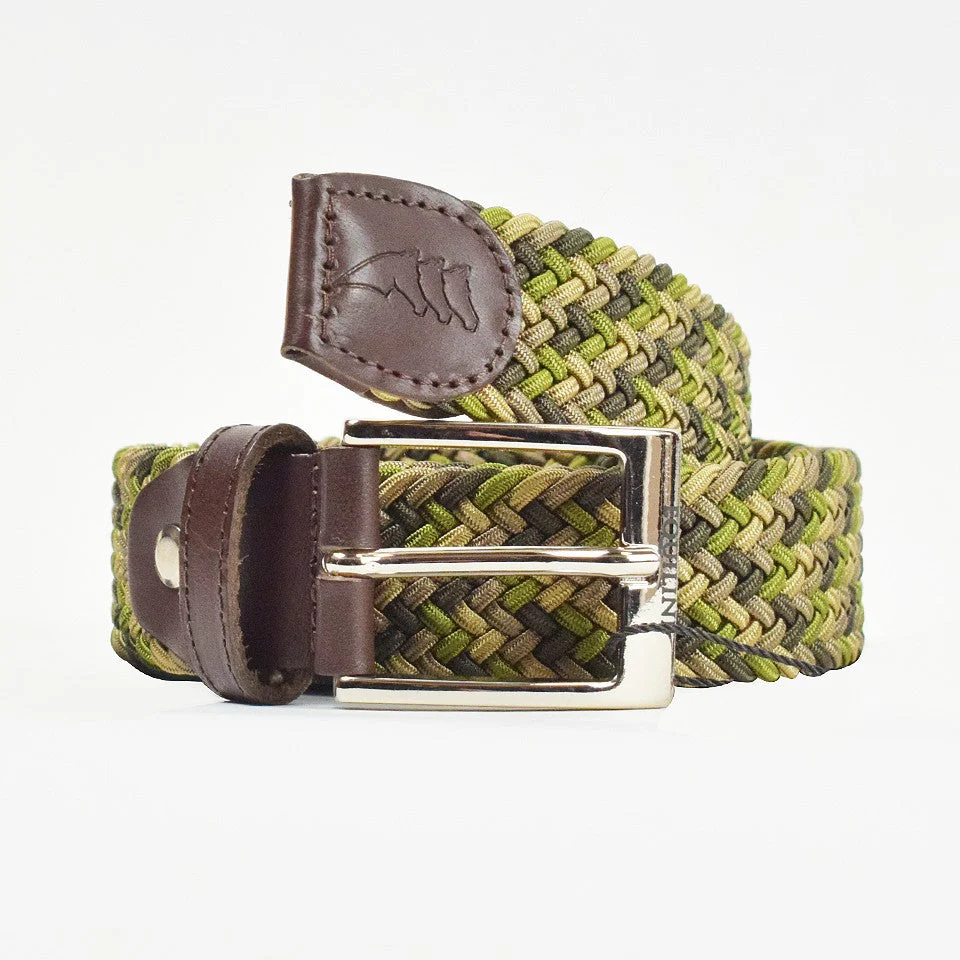 Cintura Equiline unisex modello Lee Materiale intrecciato elastico Finiture in cuoio marrone Logo Equiline
