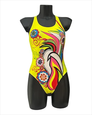 Un’esplosione di colore ed energia per performance vivaci e indimenticabili; è pensato per attirare l’attenzione in acqua grazie alla sua base giallo fluo e ai disegni floreali e grafici che donano movimento e personalità .