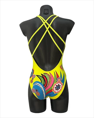 Un’esplosione di colore ed energia per performance vivaci e indimenticabili; è pensato per attirare l’attenzione in acqua grazie alla sua base giallo fluo e ai disegni floreali e grafici che donano movimento e personalità . Il modello con spalline incrociate sulla schiena garantisce ottima tenuta e libertà totale nei movimenti, ideale per coreografie dinamiche. Prodotto artigianale, […]