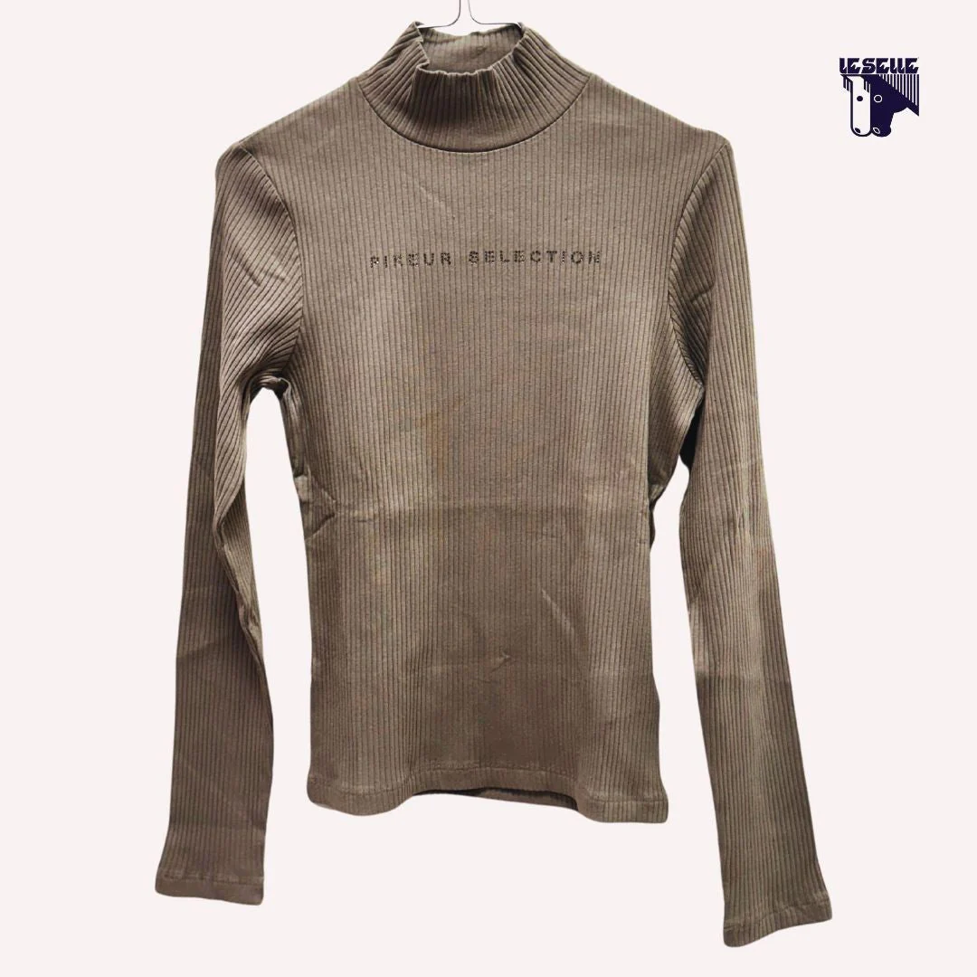 Dolcevita Pikeur – Maglia equitazione donna Cotone elasticizzato A costine Collo alto Scritta Pikeur con cristalli Articolo in sconto proveniente da stock o campionario