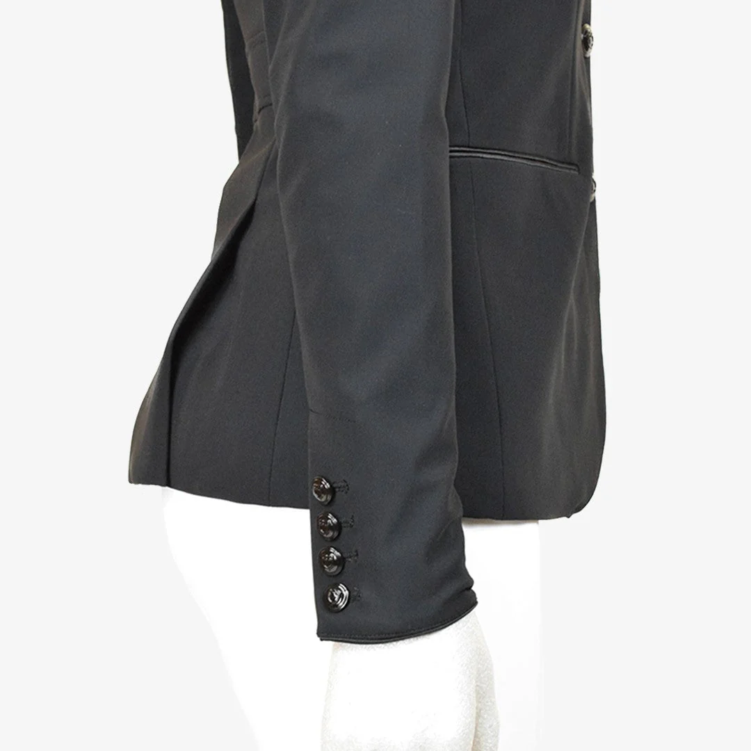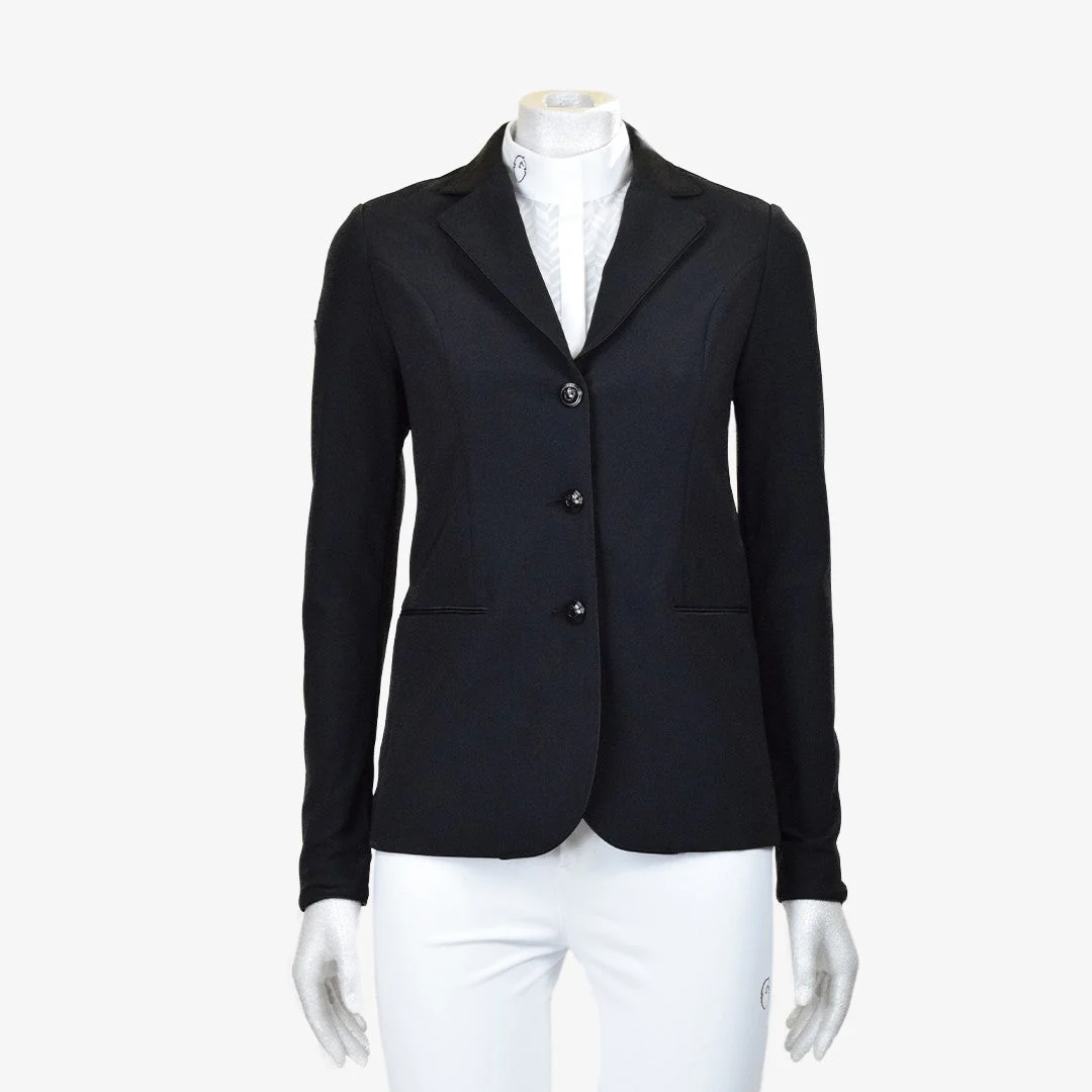 Giacca da concorso Equestro Tessuto tecnico elasticizzato Taglio classico Martingala posteriore Tre bottoni Tasche anteriori Facile da lavare e asciugare