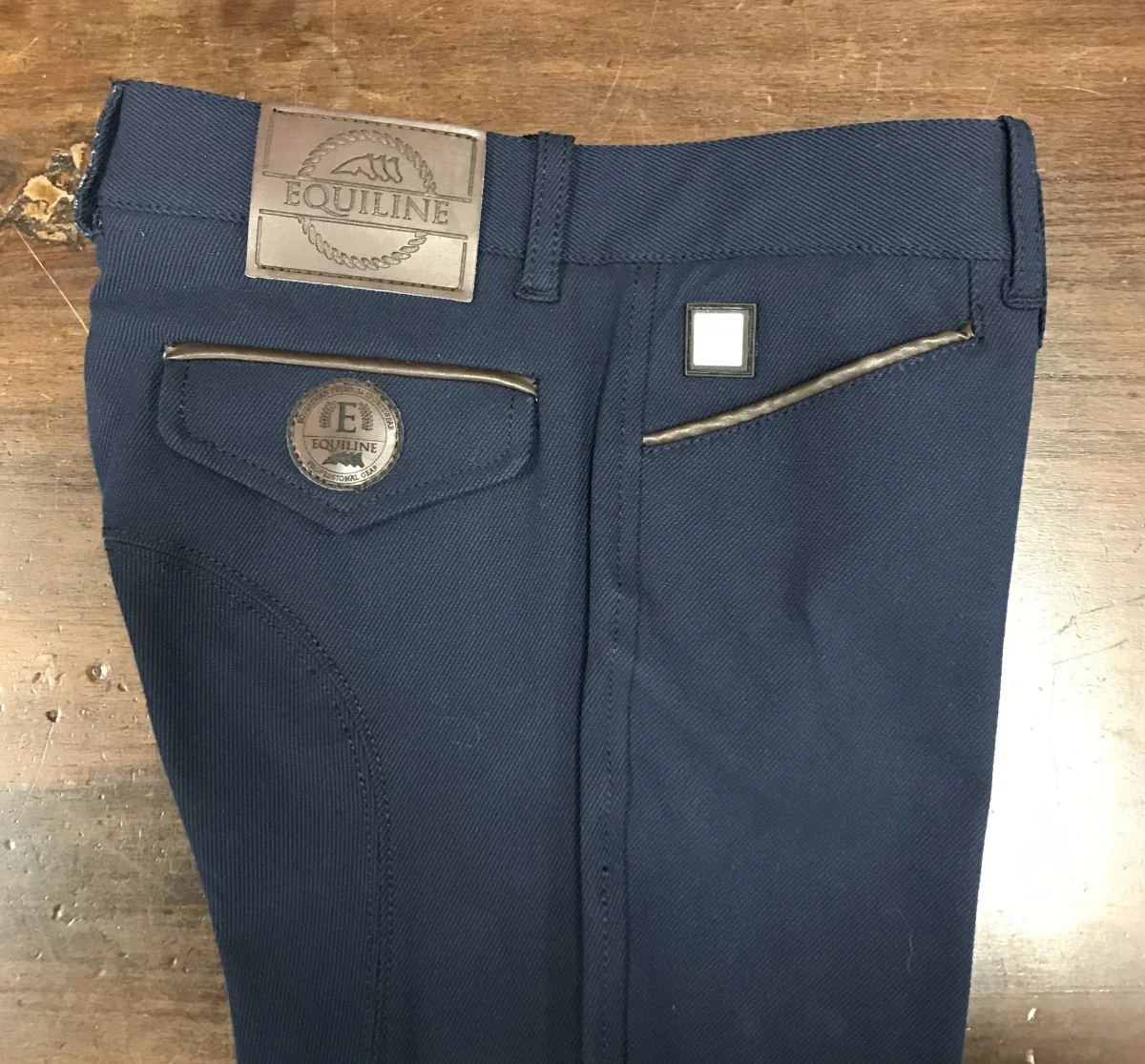 Pantaloni uomo Equiline Alger Microfibra Schoeller: traspirante, elastica e confortevole. Grip al ginocchio Decorato con inserti in ecopelle sulle tasche anteriori e posteriori Chiusura alla caviglia in lycra