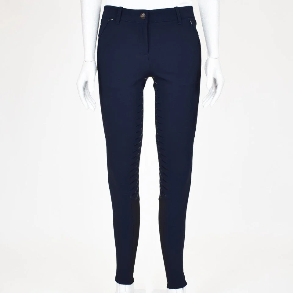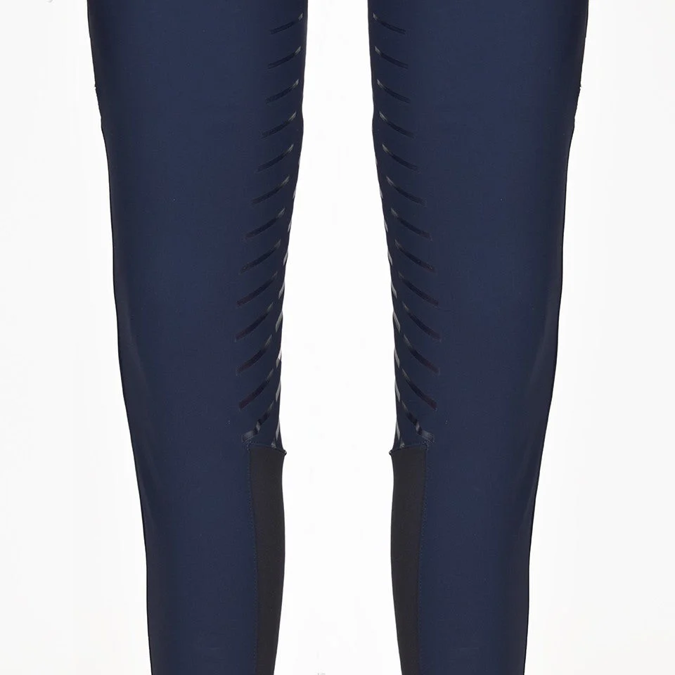 Pantaloni donna Equiline N08879 Tessuto tecnico B-Moveยฎ elasticizzato, traspirante, anti-uv Vita media Full grip Due tasche anteriori con zip Chiusura alla caviglia in lycra