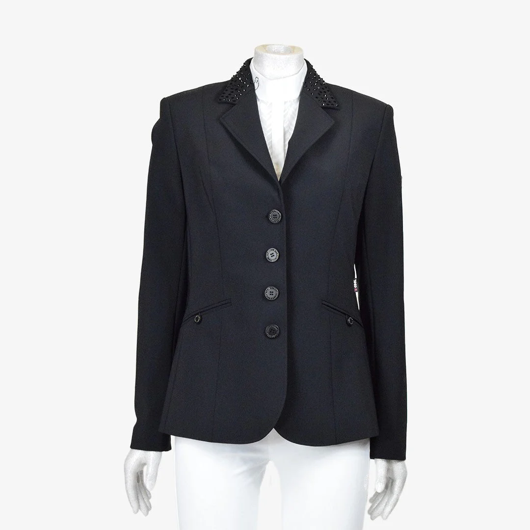 Giacca Equiline Gioia Tessuto tecnico elasticizzato di alta qualitร Taglio classico Cristalli tono su tono su colletto e su martingala Facile da lavare e asciugare