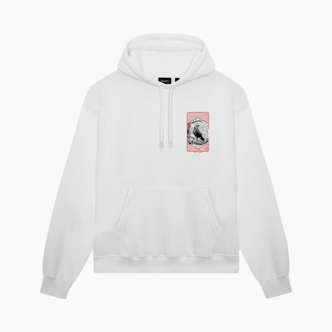 Scegli la Felpa DLYNR Raven White per distinguerti con un capo che non solo offre comfort, ma anche una profonda connessione simbolica.