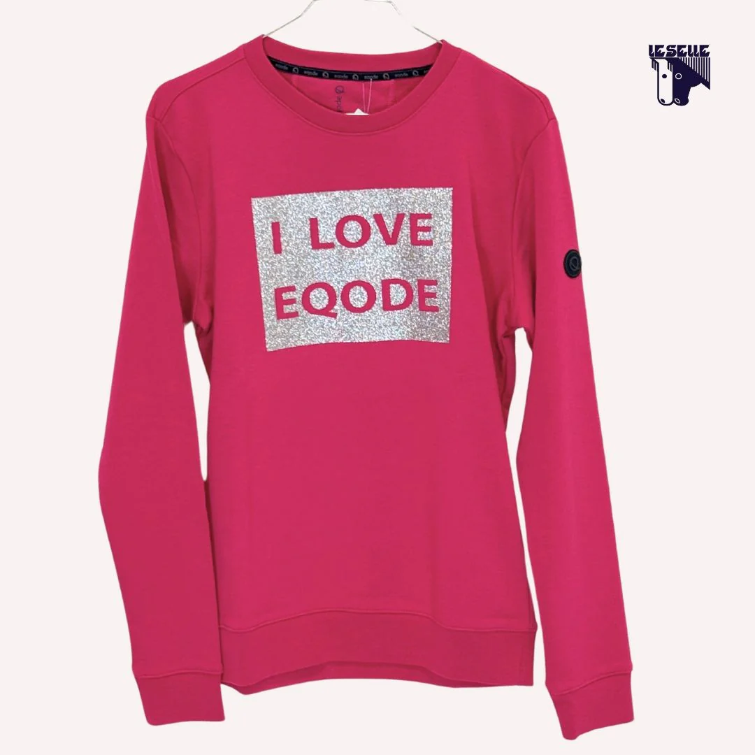 Felpa Eqode Dona G Girocollo Manica lunga Logo Eqode argento e fuxia 85% cotone Leggera Articolo in sconto perchรจ proveniente da stock