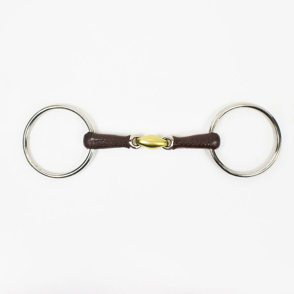 Filetto ad anelli Jump’in Doppio snodo Cannone in acciaio inox rivestito in cuoio Oliva centrale in rame tedesco Anelli da 7cm