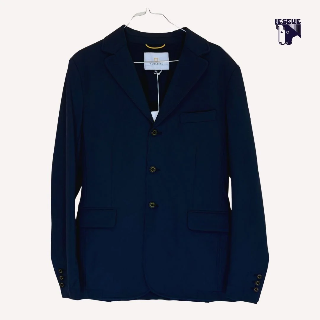 Giacca Equestro Uomo Traspirante Tessuto traforato lungo i fianchi e all’interno della manica Chiusura frontale a 3 bottoni Polsini con chiusura a 3 bottoni Tasche a soffietto Grafica con Logo Equestro a rilievo sulla spalla sinistra Articolo in sconto proveniente da campionario