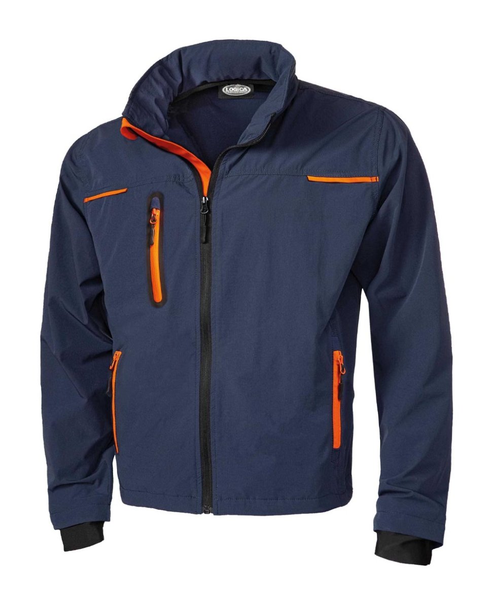Giubbino tecnico antivento e antipioggia in tessuto elasticizzato. Senza imbottitura. Con tre tasche chiuse a zip. Riporti con colore a contrasto. Confezionato in pratico box di cartone