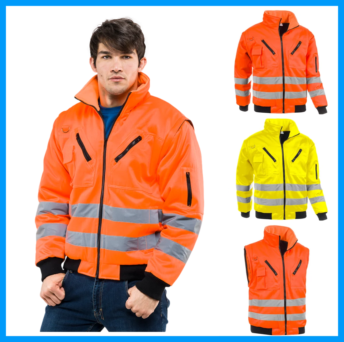 Giubbotto ad alta visibilitร multi-stagionale: รจ dotato infatti di maniche staccabili, il che lo rende utilizzabile in primavera, autunno e inverno.