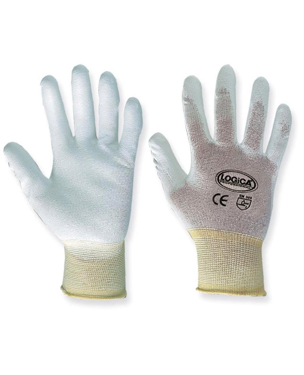Guanto in filo continuo di poliestere, palmo ricoperto in poliuretano. Dorso areato. Polsino elasticizzato.