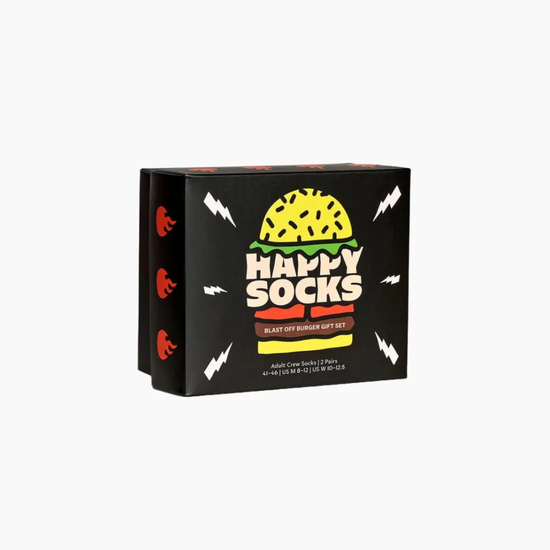 Dentro la Happy Socks Burger Box, trovi un mix irresistibile di calzini con hamburger e fulmini.
