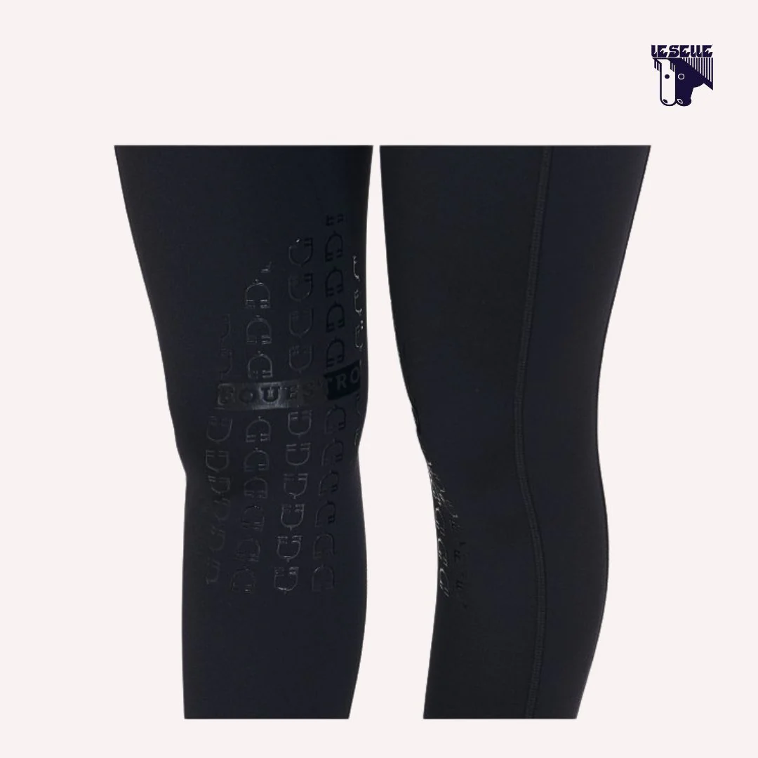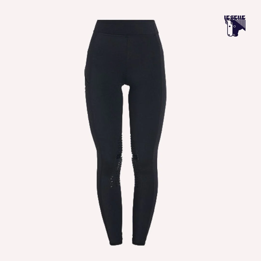 Leggings equitazione Equestro Tessuto tecnico elasticizzato Leggeri Grip al ginocchio con logo in contrasto Vita media Taschino lungo la gamba destra Cuciture a vista tono su tono