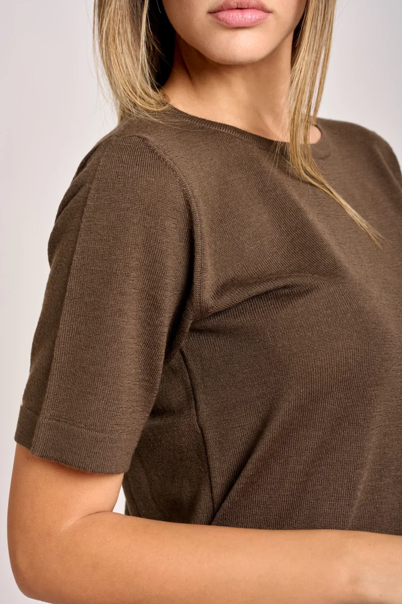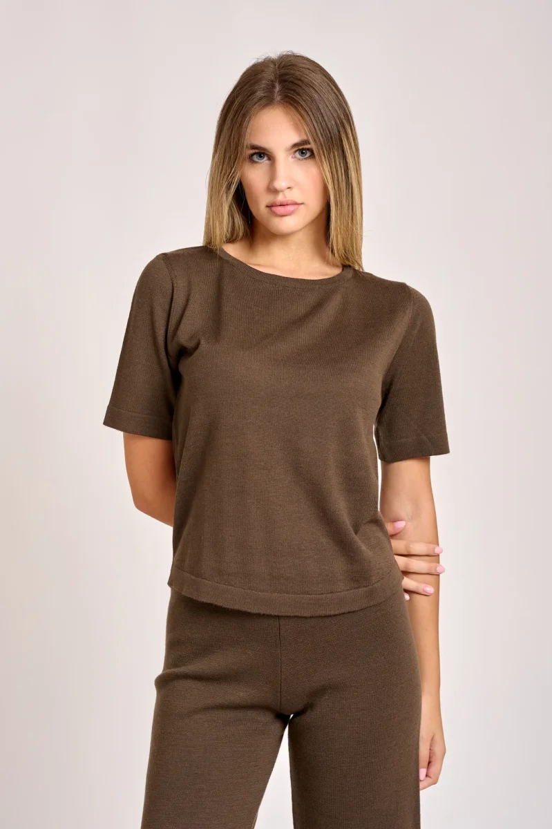 Maglia girocollo mezza manica, taglio semplice e pulito. Il capo ha uno stile semplice e adatto a diverse occasioni.