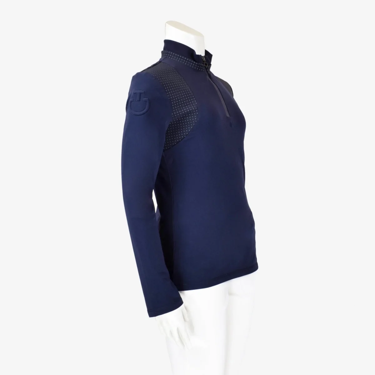 Maglia tecnica Cavalleria Toscana Tessuto tecnico Bi-Stretch traspirante, antibatterico, elastico e confortevole. Spalle con design micro-traforato Collo con cerniera Logo CT sulla manica destra.