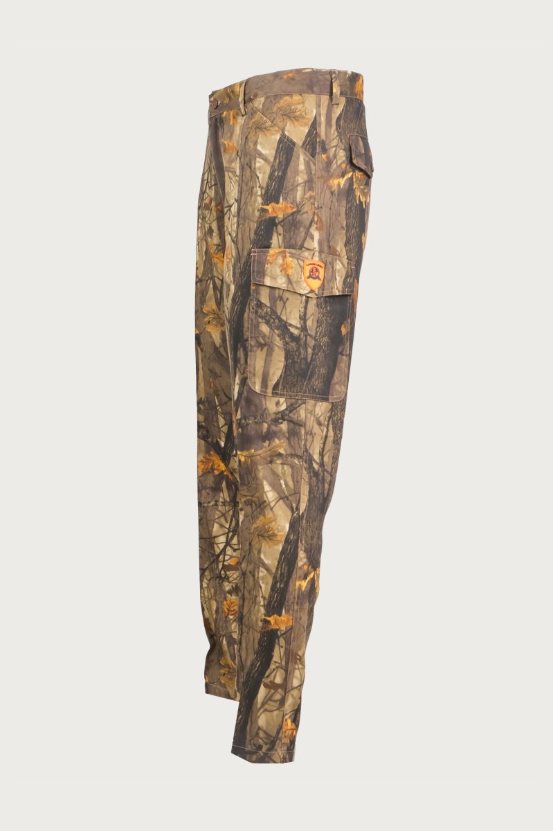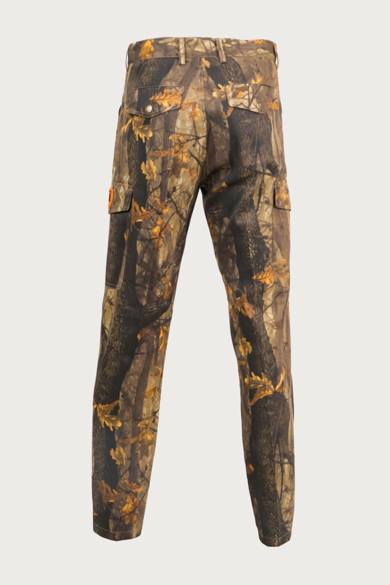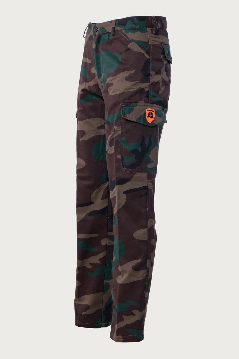 Pantalone caccia in cotone mutitasche color mimetico, bosco o verde. Disponibile anche nella versione foderata in flanella. In tessuto poli-cotone leggero e adatto nei periodi piรน caldi della stagione, ma all’occorrenza adatto anche nei periodi piรน freddi con la versione rivestita internamente in calda flanella. Dotato di comode tasche, รจ resiste allโusura e ai frequenti lavaggi.