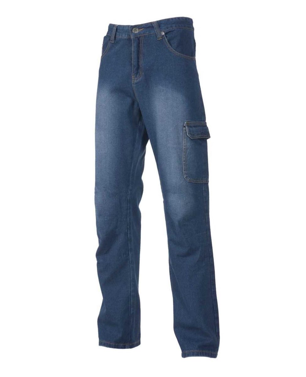 Pantalone jeans con due tasche a filetto e due tasche dietro, un tascone laterale sinistro e portametro sul lato destro. Pantalone comodo e versatile adatto per varie attivitร lavorative.