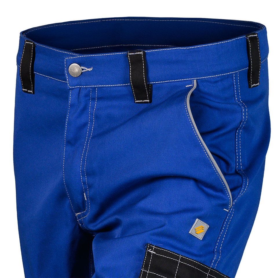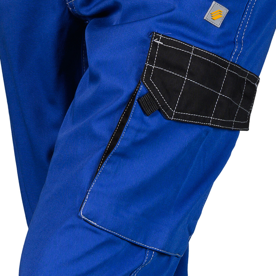 Pantalone da lavoro “PROMECH”, bicolore con cuciture a contrasto e profili rinfrangenti sulle tasche frontali e sulle ginocchia preformate. Due inserti riflettenti anche sul retro delle ginocchia per aumentare la visibilitร del lavoratore. Tutti i passanti in vita, porta metro e porta martello a contrasto neri, una tasca a soffietto sulla coscia sinistra chiusa con patella e velcro, una tasca posteriore. Chiusura frontale con zip e bottone, elastici laterali in vita.