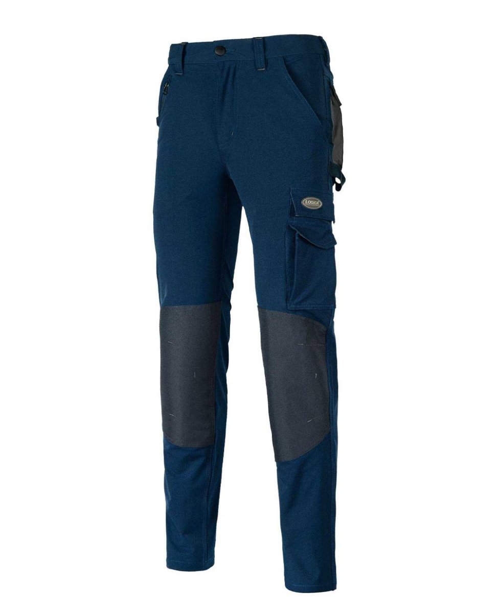 Pantalone da lavoro SUPER STRETCH LIGHT traspirabile, chiusura centrale con zip YKK e bottone, due larghe tasche frontali, 1 tascone laterale nella gamba sinistra, 2 tasconi dietro chiusi con patta, rinforzi sulle ginocchia, tripla cucitura nei punti di maggior sforzo.