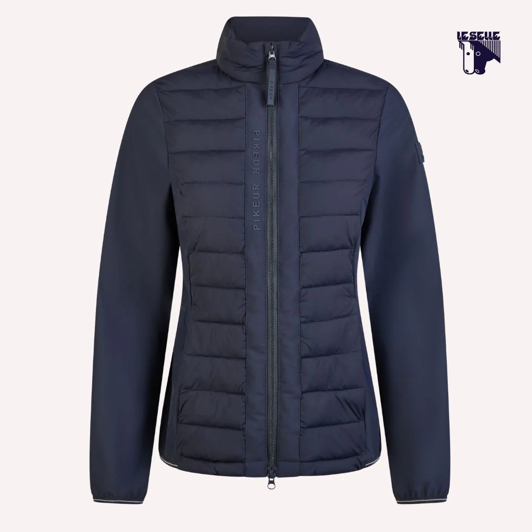 Piumino Pikeur Hybrid Donna Piumino leggero Maniche e fianchi in softshell elasticizzato Collo alto Full zip con doppio cursore Due tasche con zip Bordi delle maniche rifiniti con scritta Pikeur tono su tono Logo Pikeur tono su tono sulla manica sinistra e sul colletto