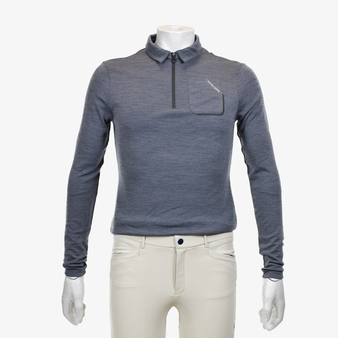 Polo tecnica uomo Cavalleria Toscana Tessuto tecnico e lana Melange Manica lunga Collo polo con zip Taschino anteriore Articolo in sconto perchรจ proveniente da campionario o stock