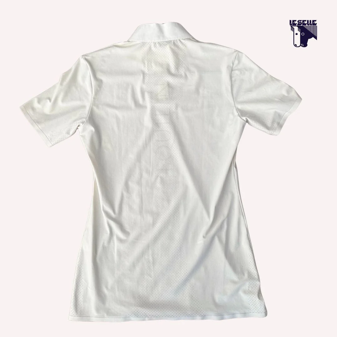 Polo Equiline Donna Bottoni Logo anteriore Mesh nelle maniche Mesh parte posteriore con scritta 72% poliammide 28% elastane Articolo in sconto proveniente da campionario o stock