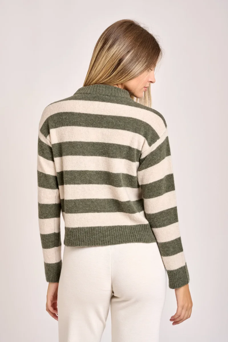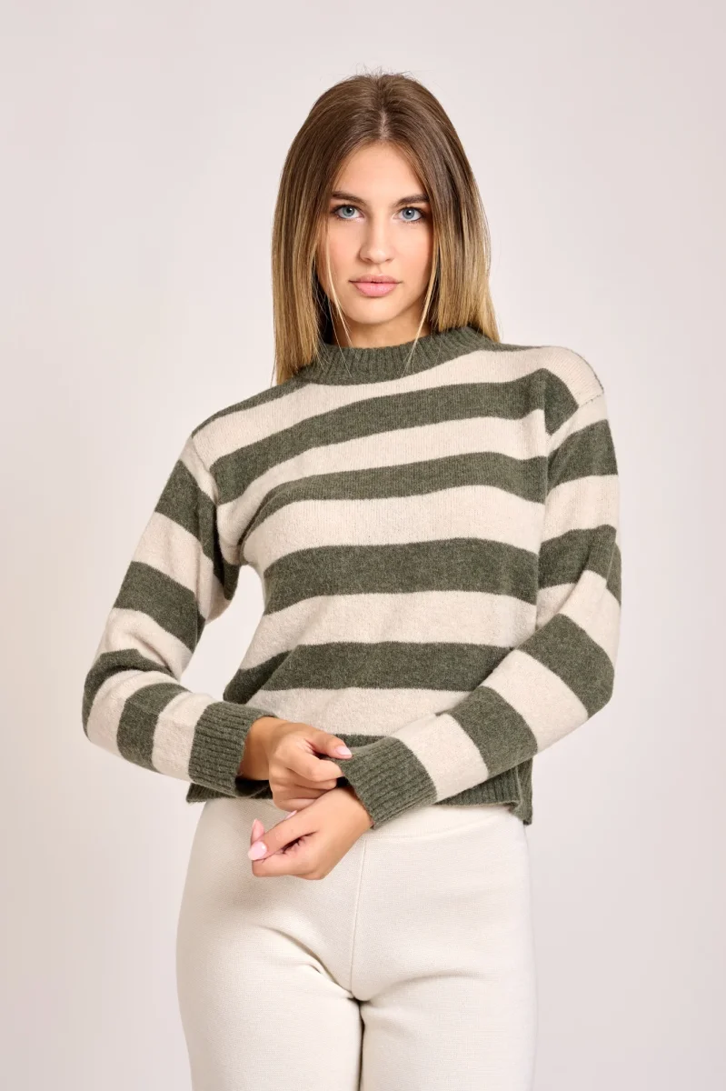 Maglia caratterizzata da un design aย  righe orizzontali girocollo a costine manica lunga, taglio classico confortevole adatto per abbigliamento casual. Morbido e caldo tipico maglione invernale. La modella รจ alta 1,78cm e indossa una taglia 42