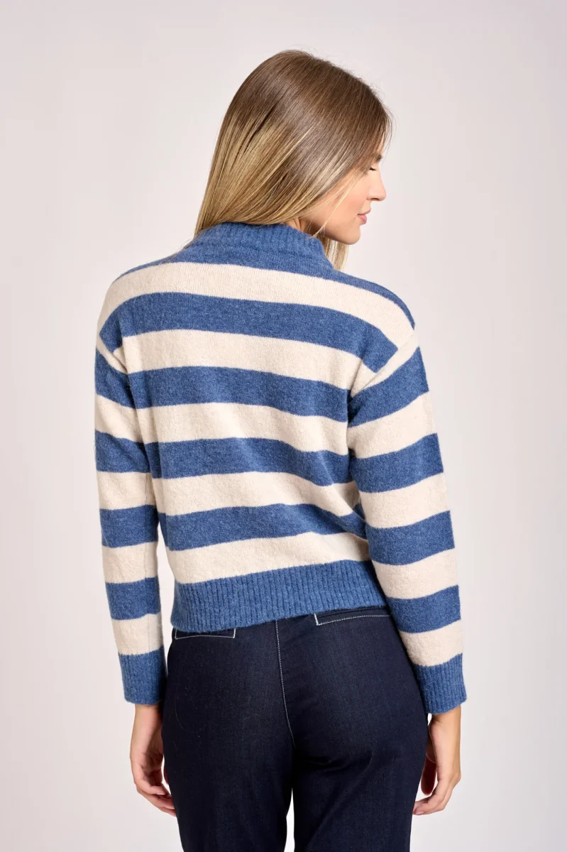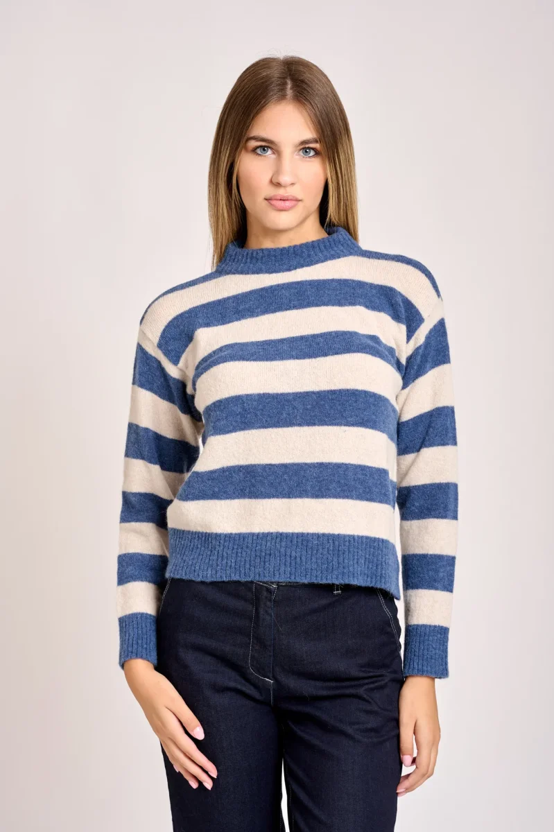 Maglia caratterizzata da un design aย  righe orizzontali girocollo a costine manica lunga, taglio classico confortevole adatto per abbigliamento casual. Morbido e caldo tipico maglione invernale. La modella รจ alta 1,78cm e indossa una taglia 42