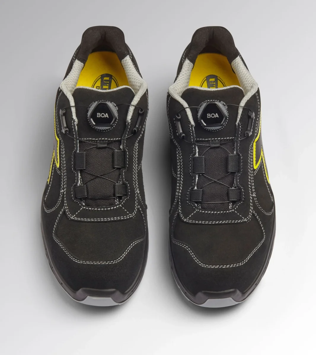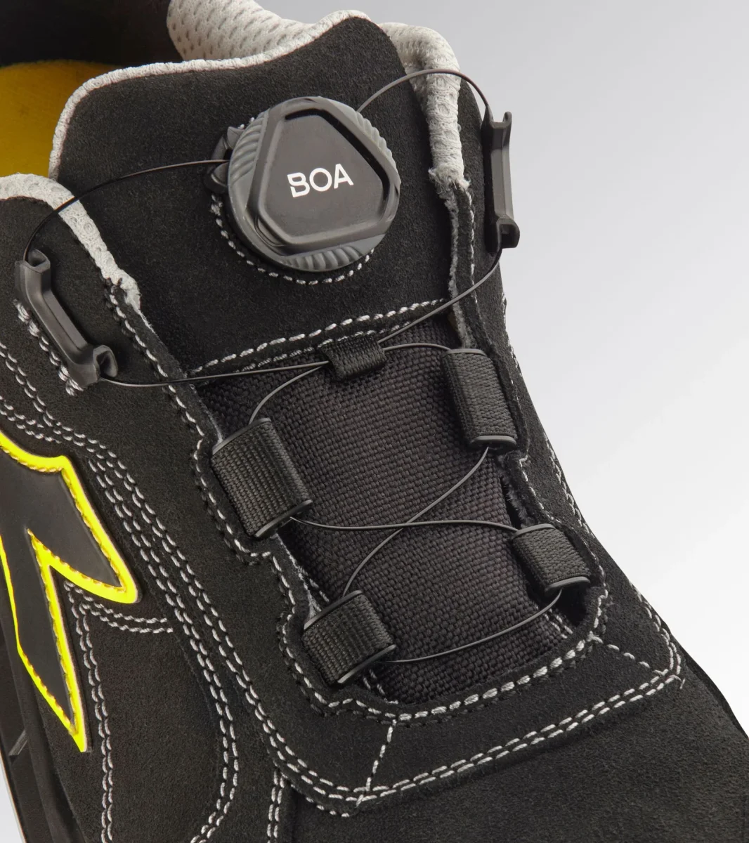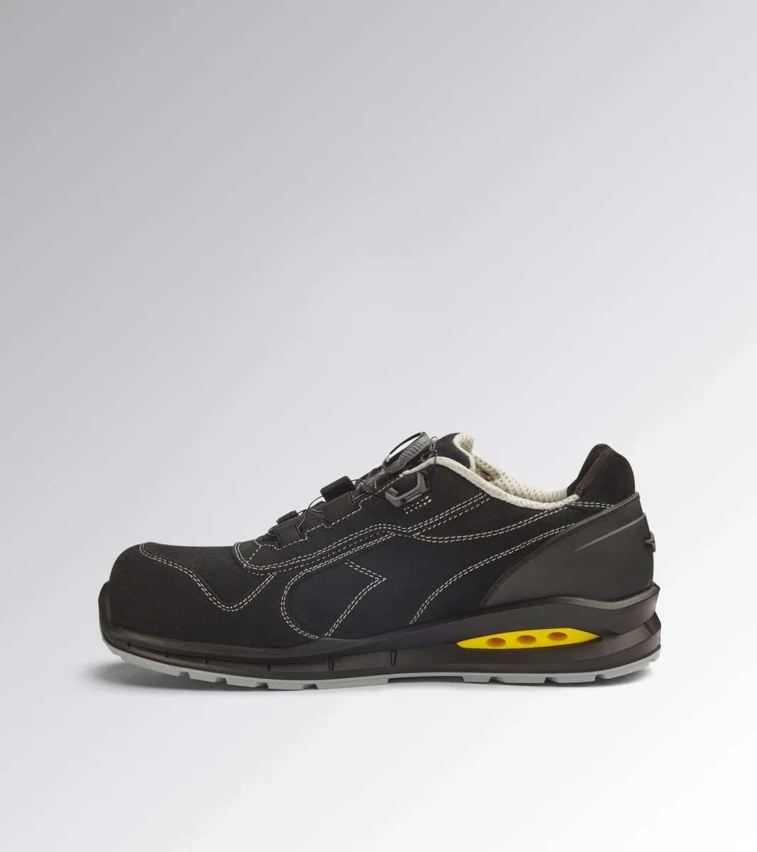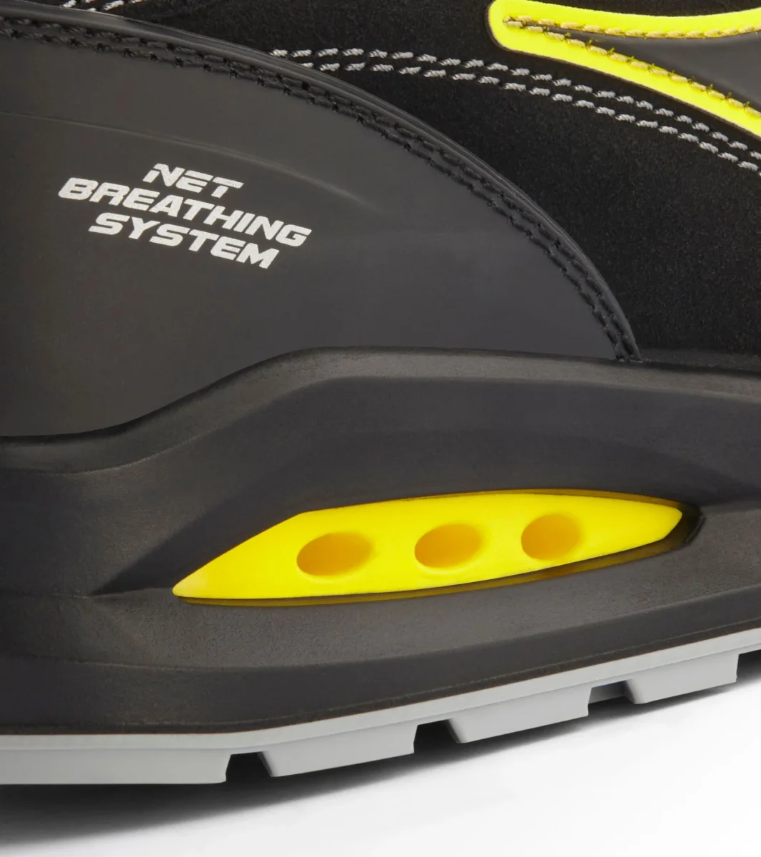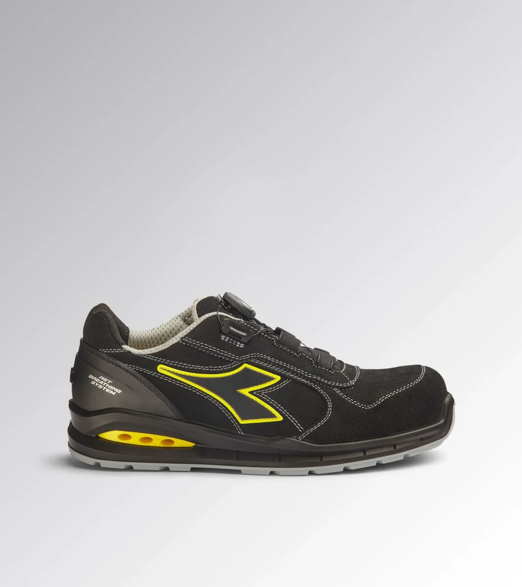 Calzatura di sicurezza bassa S3S idrorepellente in pelle bovina scamosciata. BOAยฎ Fit System per una calzata precisa microregolabile. Supporto ergonomico del tallone in TPU. Puntale in alluminio 200J. Inserto antiperforazione K-SOLE. Calzata 11. Tecnologia Net Breathing System by Geox con sistema di traspirazione laterale. Fodera in Air Mesh con antiscalzante in microfibra. Plantare estraibile microforato in PU espanso a celle aperte, traspirante con carboni attivi. Scarpa antinfortunistica bassa con sistema di allacciatura BOAยฎ Fit System