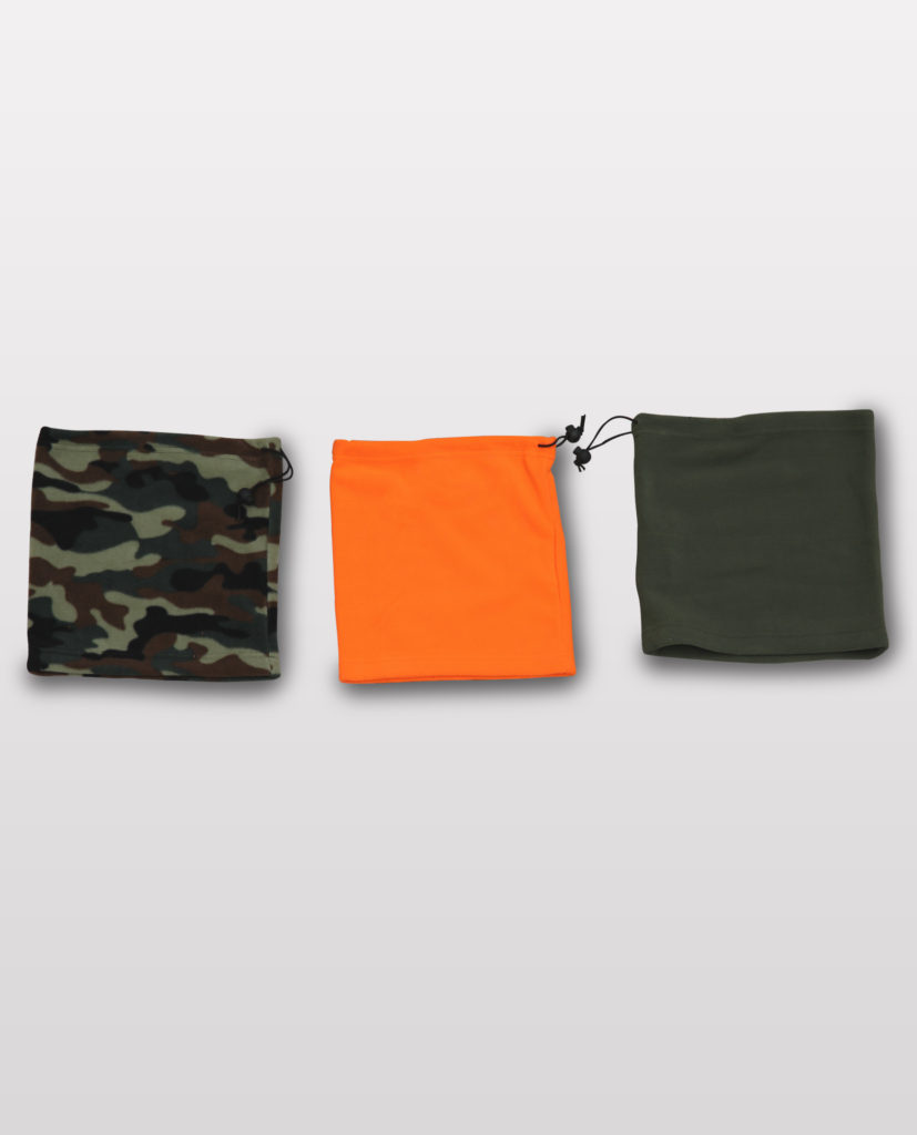 Paracollo in caldo pile alta grammatura, nei colori verde, mimetico e arancio fluo. Dotato di laccio di regolazione.
