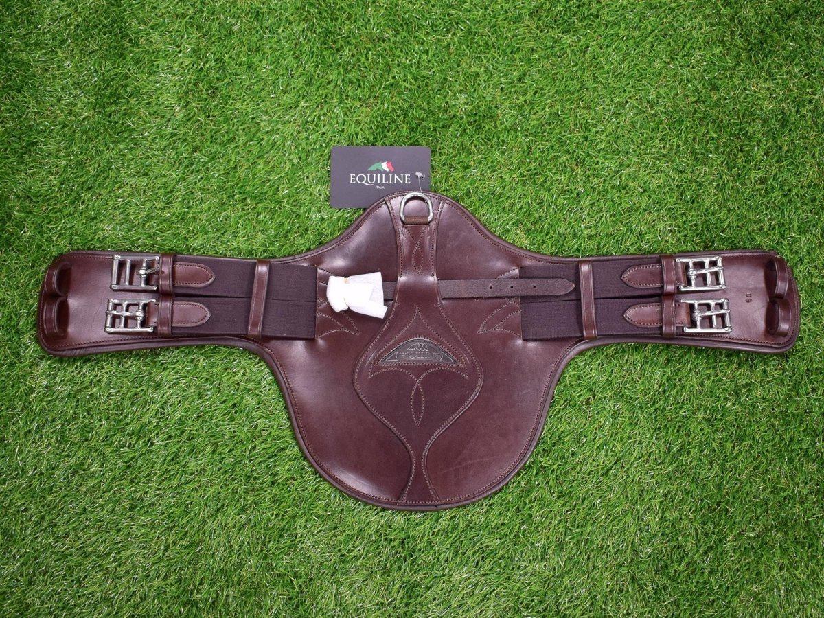 Sottopancia pararamponi Equiline Studiato per le selle monoquartiere da completo, Pelle di alta qualitร Forma anatomica Fibbia rimovibile e anello per pettorale Elastici alle estremitร