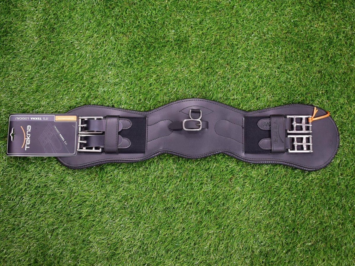 Sottopancia monoquartiere Tekna Esterno in eco-pelle Interno in neoprene Studiato per selle da dressage e da completo Fibbia e anello per martingala Elastici alle estremitร Pratico da lavare