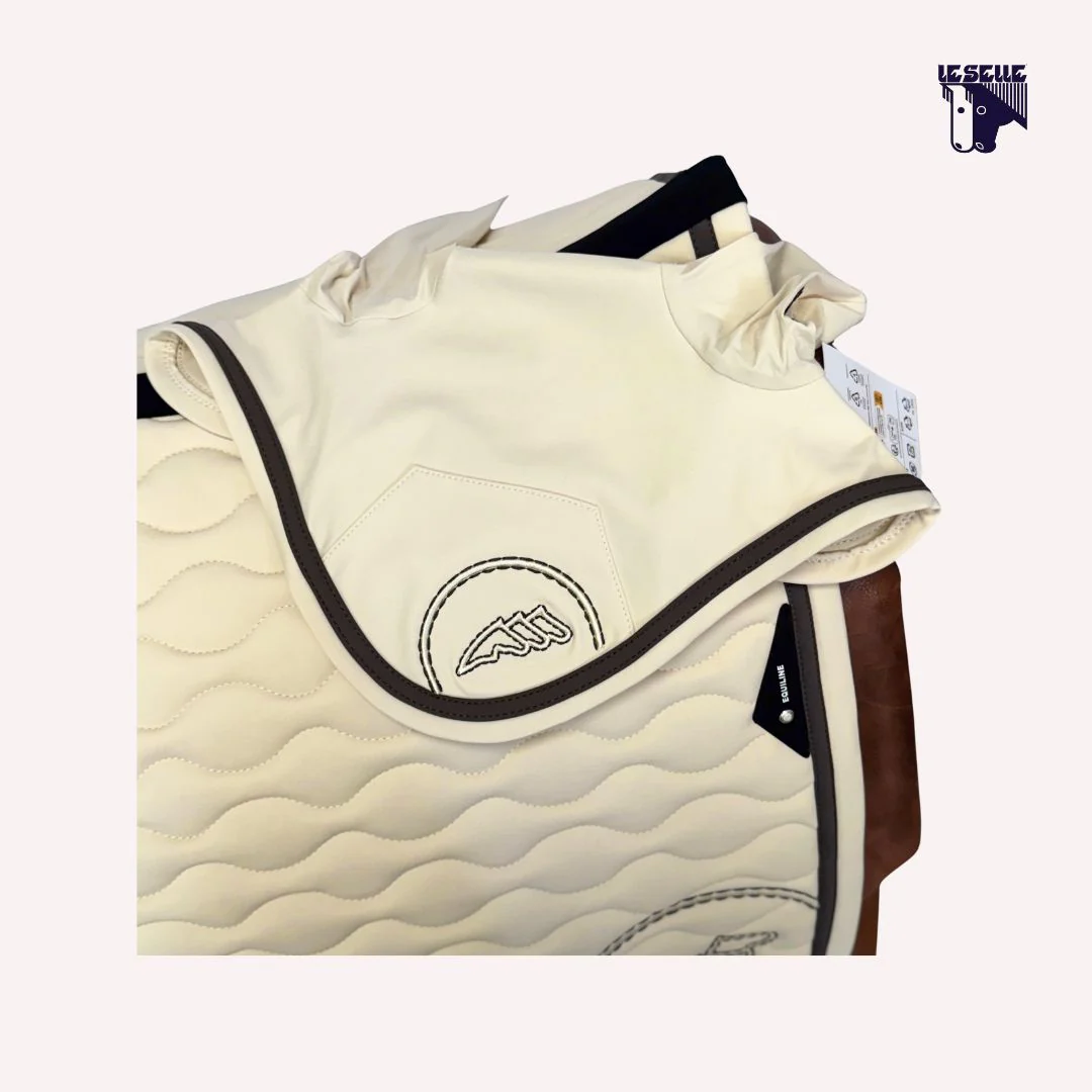 Sottosella da salto e cuffietta Equiline Esterno in tessuto tecnico Interno in mesh 3D traspirante Imbottitura interna antibatterica con sistema ammortizzante Trapuntatura a onde Logo Equiline Bordo interno in contrasto Cuffietta in tessuto tecnico in coordinato