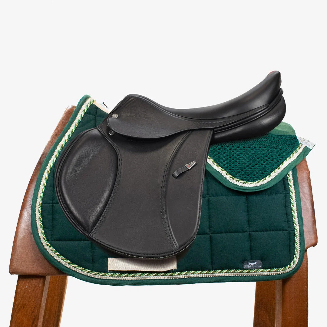 Completo sottosella e cuffietta Marta Morgan Sottosella in cotone effetto velluto Trapuntatura a quadri Interno in cotone Corda tricolore e beige Cuffietta abbinata 100% made in Italy