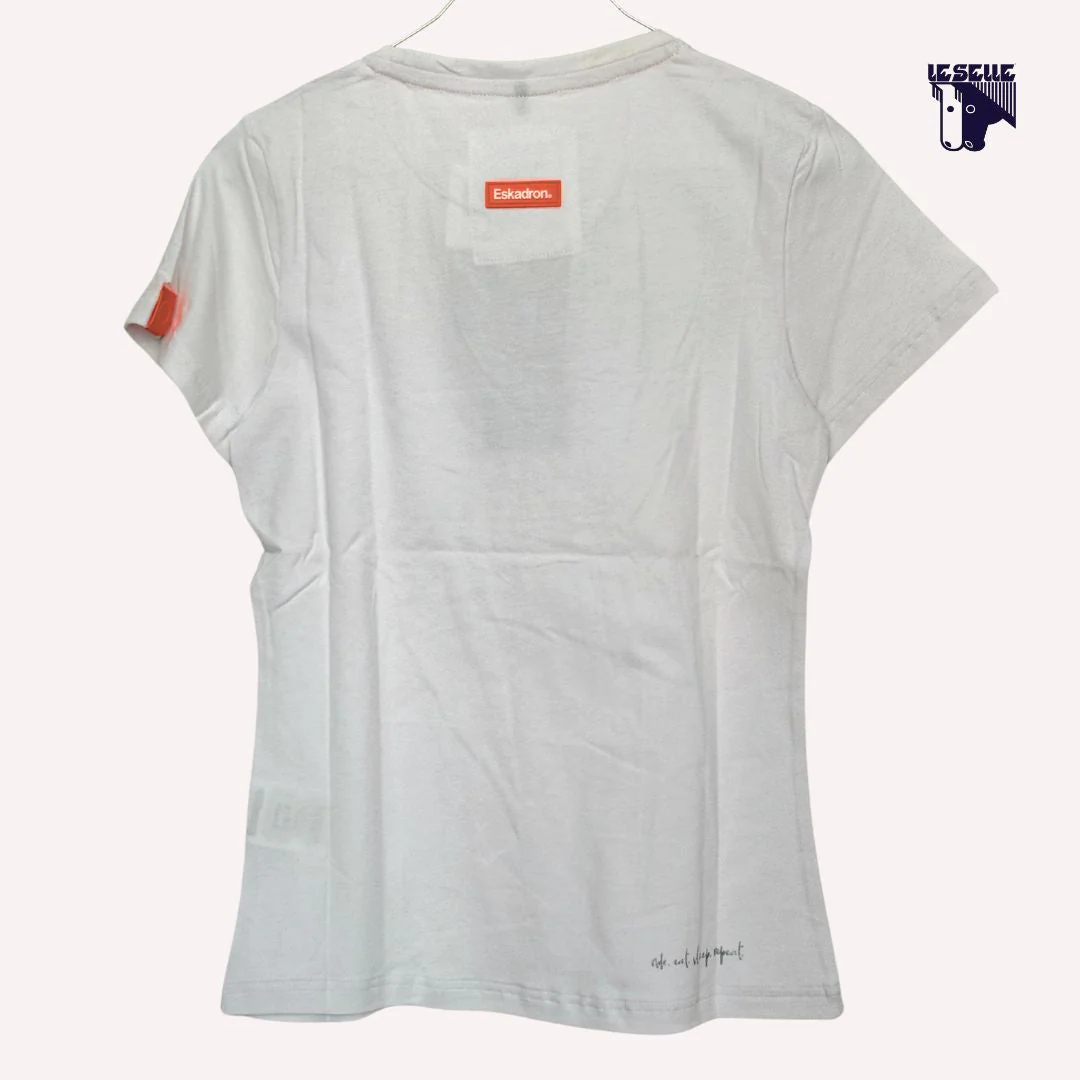 T-shirt Eskadron Donna Girocollo Scritta in lurex nella parte anteriore Targhetta sulla manica sinistra Targhetta nella parte posteriore Articolo in sconto proveniente da campionario