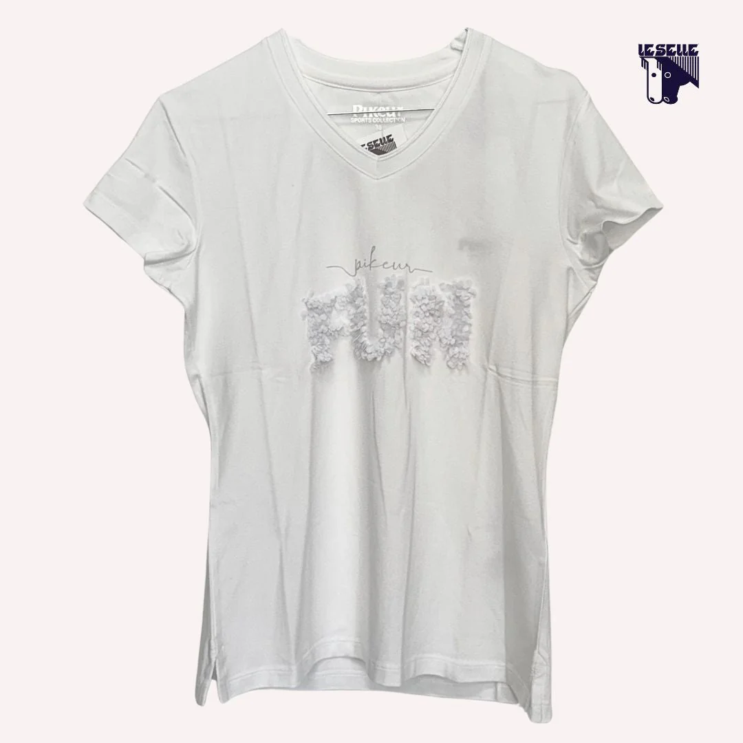 T-shirt Pikeur Donna Scollo a V Scritta in rilievo parte anteriore Targhetta nella parte posteriore 95% cotone 5% elastane Articolo in sconto proveniente da campionario