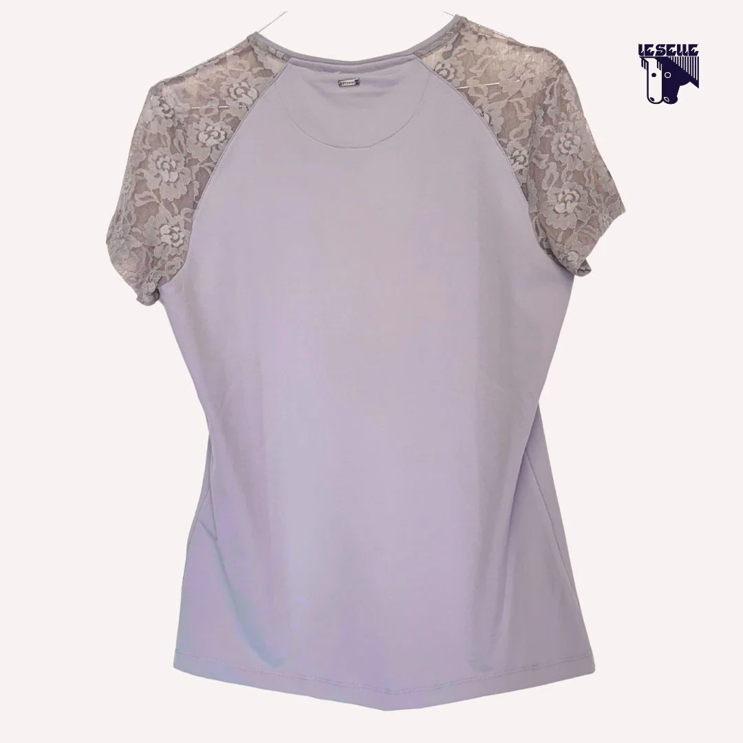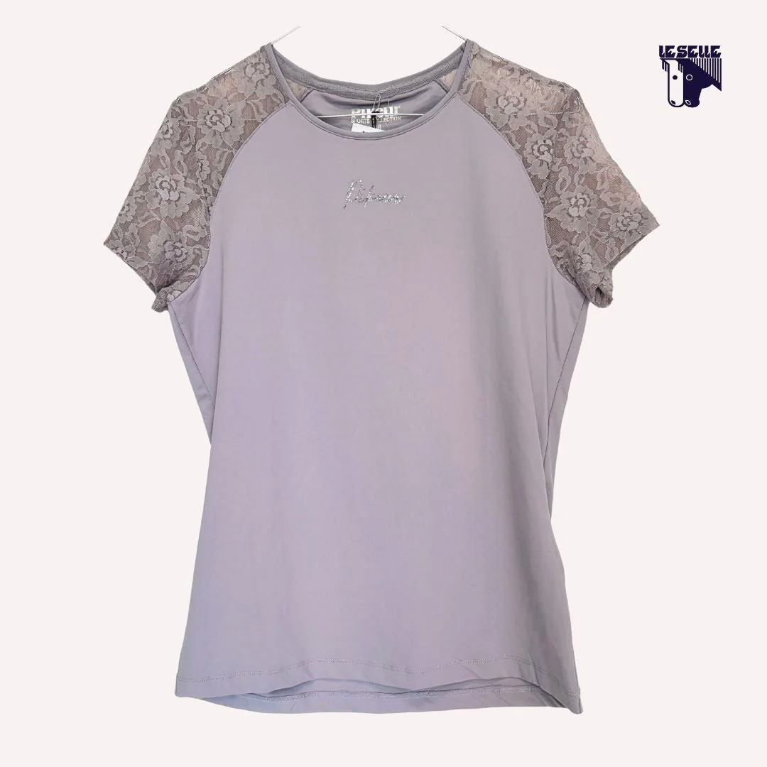 T-shirt Pikeur Donna Girocollo Scritta con strass nella parte anteriore Pizzo sulle spalle e maniche Targhetta nella parte posteriore Articolo in sconto proveniente da campionario